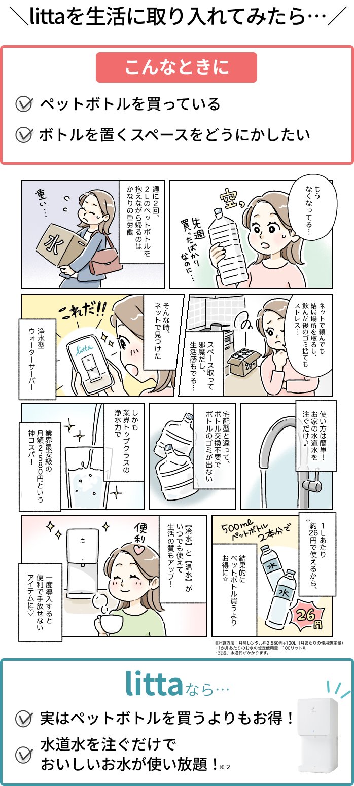 と、神コスパなウォーターサーバーが「litta」です。