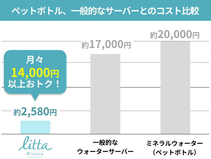 さらに、月あたりのコストでペットボトルや一般的なウォーターサーバーと比較すると、