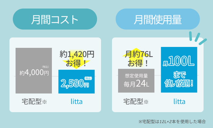 ※ 計算方法:月額レンタル料2,580円÷100L(月あたりの使用想定量)