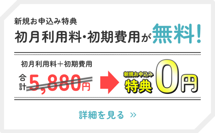 なんと「初期費用」と「初月利用料」がまるまる無料に!