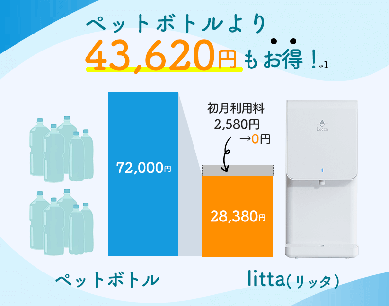 *計算方法:月額レンタル料2,580円÷60L(月あたりの使用想定量)