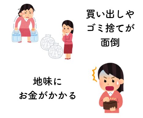 ペットボトルの買い出しや